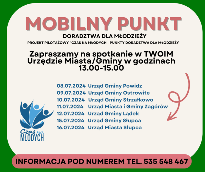 PROJEKT PILOTAŻOWY “CZAS NA MŁODYCH – PUNKTY DORADZTWA DLA MŁODZIEŻY