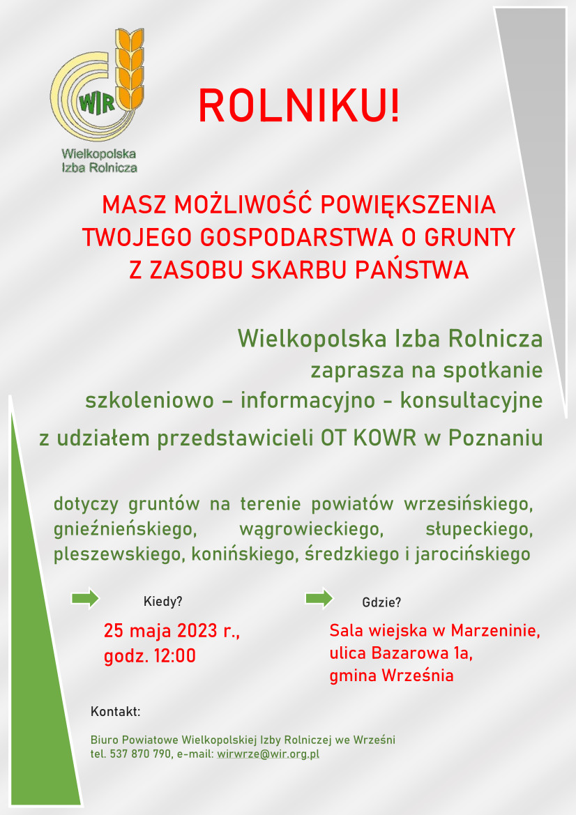 Wielkopolska Izba Rolnicza zaprasza na spotkanie szkoleniowo – informacyjno – konsultacyjne