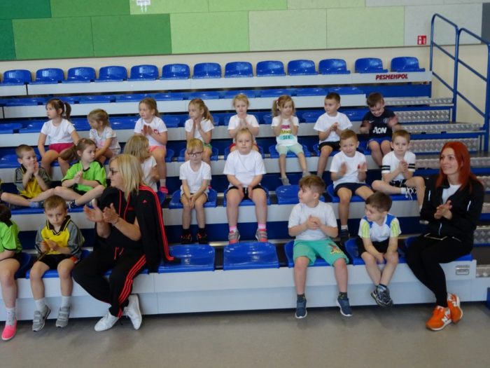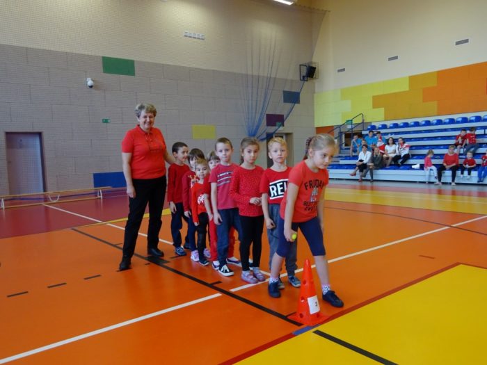 Przedszkolacy brali udział w 6 konkurencjach sportowych: wyścig z pałeczką sztafetową, sadzenie ziemniaków, czworakowanie, szybka piłka, tor przeszkód i wyścig par.